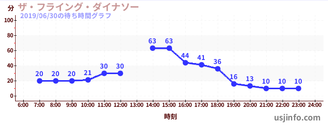 • ザ・フライング・ダイナソー$B$N(B2019年06月30日の待ち時間