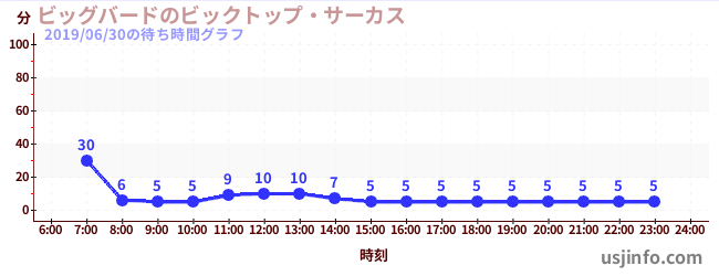 • ビッグバードのビックトップ・サーカス$B$N(B2019年06月30日の待ち時間