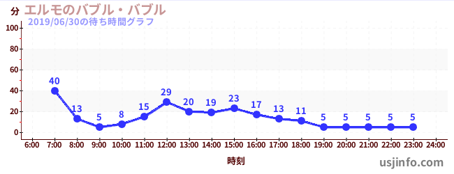 • エルモのバブル・バブル$B$N(B2019年06月30日の待ち時間