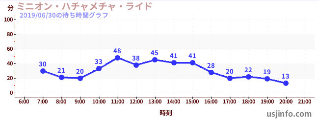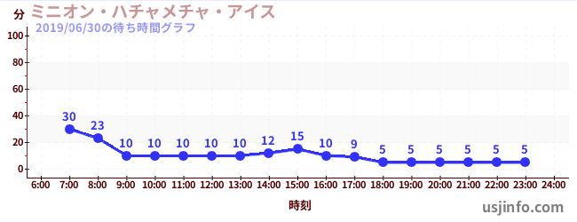 • ミニオン・ハチャメチャ・ライド$B$N(B2019年06月30日の待ち時間