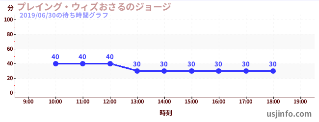 • プレイング・ウィズおさるのジョージ$B$N(B2019年06月30日の待ち時間