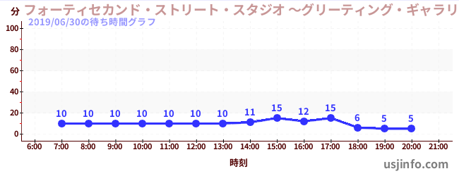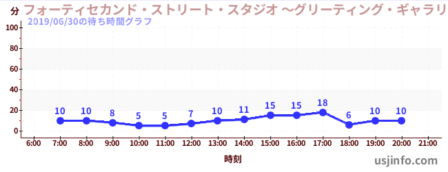• フォーティセカンド・ストリート・スタジオ ~グリーティング・ギャラリー~ ミニオン$B$N(B2019年06月30日の待ち時間