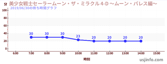 • 美少女戦士セーラームーン・ザ・ミラクル 4-D ~ムーン・パレス編~$B$N(B2019年06月30日の待ち時間
