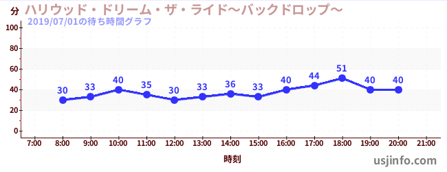 • ハリウッド・ドリーム・ザ・ライド〜バックドロップ〜$B$N(B2019年07月01日の待ち時間