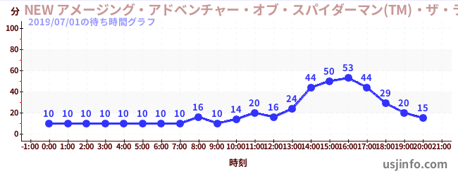 • NEW アメージング・アドベンチャー・オブ・スパイダーマン(TM)・ザ・ライド 4K3D$B$N(B2019年07月01日の待ち時間