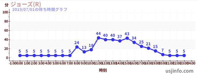 • ジョーズ(R)$B$N(B2019年07月01日の待ち時間