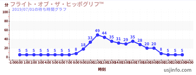 • フライト・オブ・ザ・ヒッポグリフ™$B$N(B2019年07月01日の待ち時間