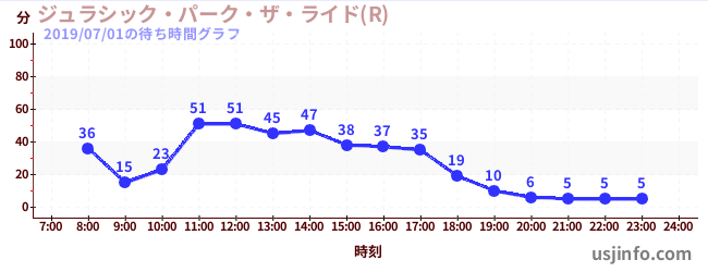 • ジュラシック・パーク・ザ・ライド(R)$B$N(B2019年07月01日の待ち時間