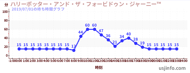 • ハリーポッター・アンド・ザ・フォービドゥン・ジャーニー™$B$N(B2019年07月01日の待ち時間