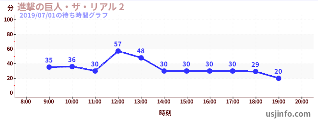 • 進撃の巨人・ザ・リアル 2$B$N(B2019年07月01日の待ち時間