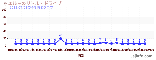 • エルモのリトル・ドライブ$B$N(B2019年07月01日の待ち時間