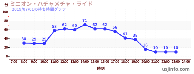 • ミニオン・ハチャメチャ・ライド$B$N(B2019年07月01日の待ち時間