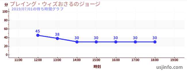 • プレイング・ウィズおさるのジョージ$B$N(B2019年07月01日の待ち時間
