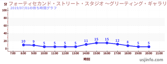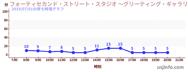 • フォーティセカンド・ストリート・スタジオ ~グリーティング・ギャラリー~ ミニオン$B$N(B2019年07月01日の待ち時間