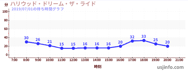 • ハリウッド・ドリーム・ザ・ライド$B$N(B2019年07月01日の待ち時間