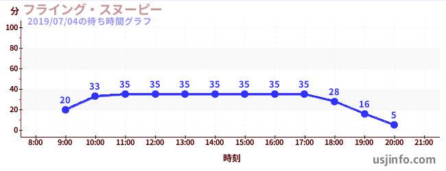 • フライング・スヌーピー$B$N(B2019年07月04日の待ち時間