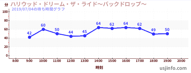 • ハリウッド・ドリーム・ザ・ライド〜バックドロップ〜$B$N(B2019年07月04日の待ち時間