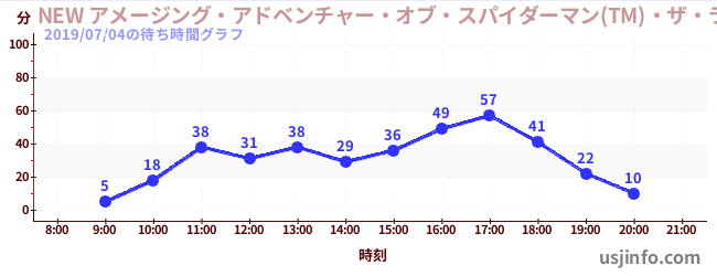 • NEW アメージング・アドベンチャー・オブ・スパイダーマン(TM)・ザ・ライド 4K3D$B$N(B2019年07月04日の待ち時間