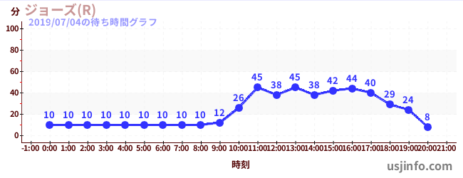 • ジョーズ(R)$B$N(B2019年07月04日の待ち時間