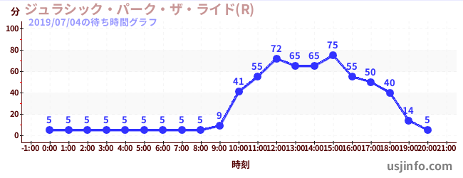 • ジュラシック・パーク・ザ・ライド(R)$B$N(B2019年07月04日の待ち時間
