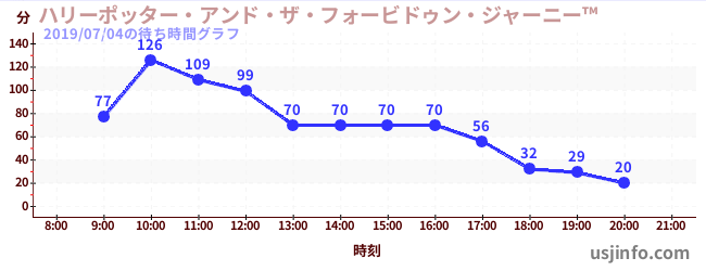 • ハリーポッター・アンド・ザ・フォービドゥン・ジャーニー™$B$N(B2019年07月04日の待ち時間