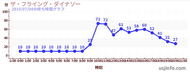 • ザ・フライング・ダイナソー$B$N(B2019年07月04日の待ち時間