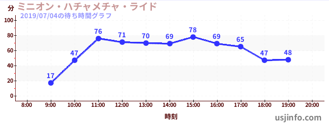 • ミニオン・ハチャメチャ・ライド$B$N(B2019年07月04日の待ち時間