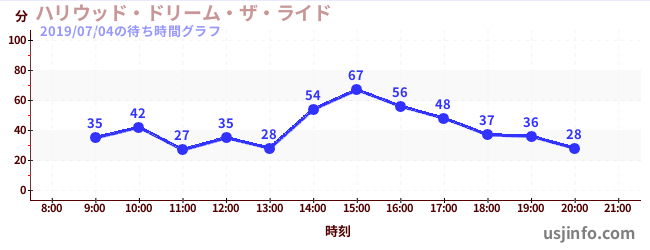 • ハリウッド・ドリーム・ザ・ライド$B$N(B2019年07月04日の待ち時間