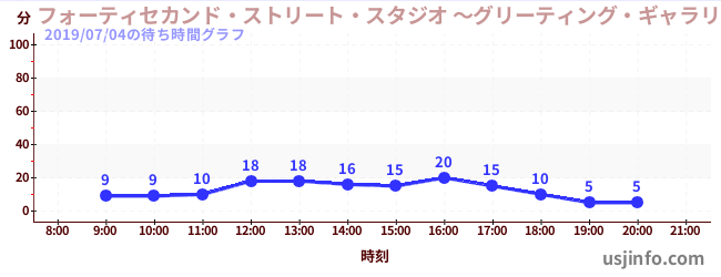 • フォーティセカンド・ストリート・スタジオ ~グリーティング・ギャラリー~ ミニオン$B$N(B2019年07月04日の待ち時間