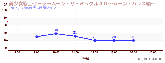 • 美少女戦士セーラームーン・ザ・ミラクル 4-D ~ムーン・パレス編~$B$N(B2019年07月04日の待ち時間