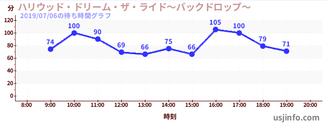 • ハリウッド・ドリーム・ザ・ライド〜バックドロップ〜$B$N(B2019年07月06日の待ち時間