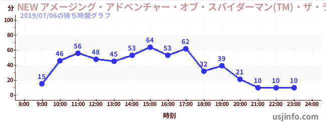 • NEW アメージング・アドベンチャー・オブ・スパイダーマン(TM)・ザ・ライド 4K3D$B$N(B2019年07月06日の待ち時間