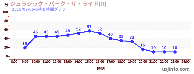 • ジュラシック・パーク・ザ・ライド(R)$B$N(B2019年07月06日の待ち時間