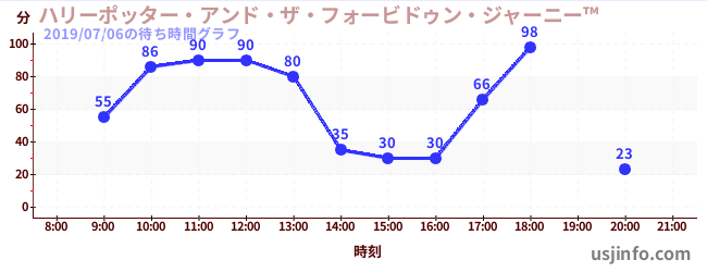 • ハリーポッター・アンド・ザ・フォービドゥン・ジャーニー™$B$N(B2019年07月06日の待ち時間