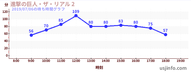 • 進撃の巨人・ザ・リアル 2$B$N(B2019年07月06日の待ち時間
