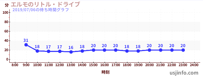 • エルモのリトル・ドライブ$B$N(B2019年07月06日の待ち時間
