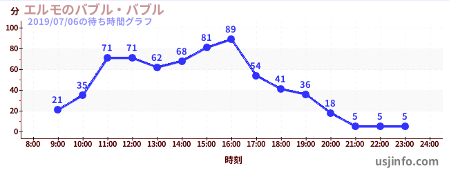 • エルモのバブル・バブル$B$N(B2019年07月06日の待ち時間