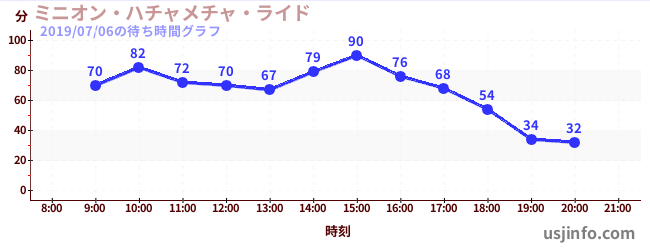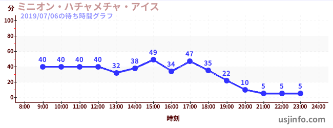 • ミニオン・ハチャメチャ・ライド$B$N(B2019年07月06日の待ち時間