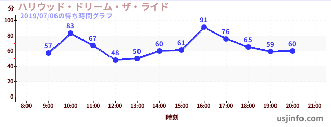 • ハリウッド・ドリーム・ザ・ライド$B$N(B2019年07月06日の待ち時間