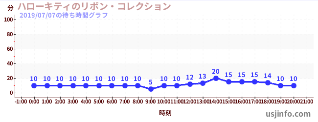 • ハローキティのリボン・コレクション$B$N(B2019年07月07日の待ち時間