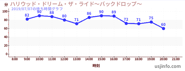 • ハリウッド・ドリーム・ザ・ライド〜バックドロップ〜$B$N(B2019年07月07日の待ち時間