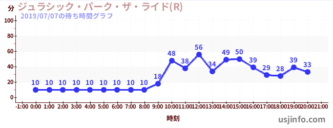• ジュラシック・パーク・ザ・ライド(R)$B$N(B2019年07月07日の待ち時間