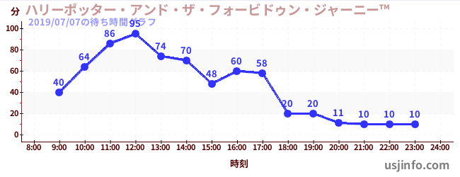 • ハリーポッター・アンド・ザ・フォービドゥン・ジャーニー™$B$N(B2019年07月07日の待ち時間