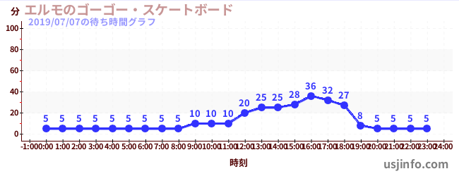 • エルモのゴーゴー・スケートボード$B$N(B2019年07月07日の待ち時間