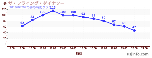 • ザ・フライング・ダイナソー$B$N(B2019年07月07日の待ち時間