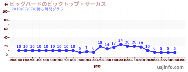 • ビッグバードのビックトップ・サーカス$B$N(B2019年07月07日の待ち時間