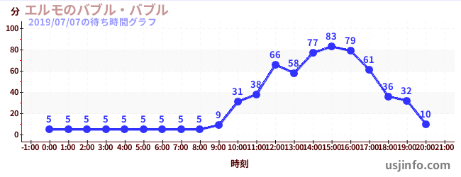 • エルモのバブル・バブル$B$N(B2019年07月07日の待ち時間