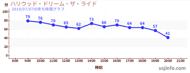 • ハリウッド・ドリーム・ザ・ライド$B$N(B2019年07月07日の待ち時間