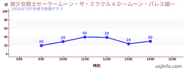 • 美少女戦士セーラームーン・ザ・ミラクル 4-D ~ムーン・パレス編~$B$N(B2019年07月07日の待ち時間