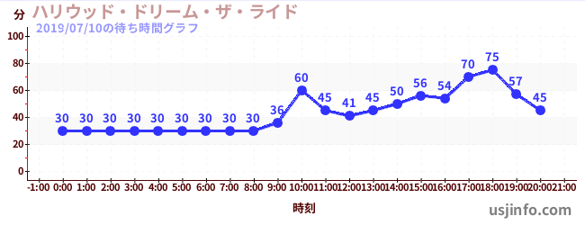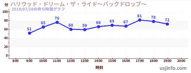 • ハリウッド・ドリーム・ザ・ライド〜バックドロップ〜$B$N(B2019年07月10日の待ち時間